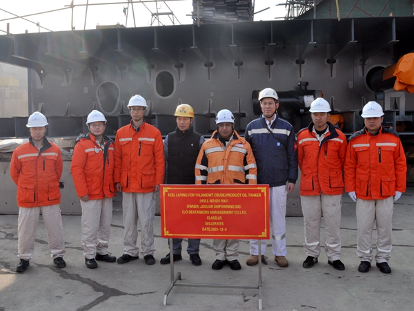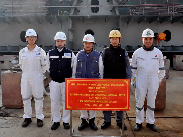 12月5日上午,公司在1#塢內(nèi)舉行船舶進(jìn)塢合攏儀式,總經(jīng)理助理徐震宇分別與挪威船東Frontline、船東國(guó)銀金租的代表出席活動(dòng),見證41#115000噸原油/成品油船、37#50000噸Ⅱ類化學(xué)品船的船體結(jié)構(gòu)開始吊裝合攏。