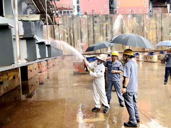 7月6日上午,公司在2#塢內(nèi)舉行船舶上臺(tái)合攏儀式,副總經(jīng)理朱韓鋼與5#325000噸礦砂船(VLOC)的船東代表、船級(jí)社代表出席活動(dòng),見證船舶船體合攏建造工作正式開始。