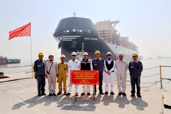 4月6日上午,公司3#塢區(qū)域,4#10#8100箱LNG雙燃料動(dòng)力集裝箱船在海事拖輪的牽引下先后從塢內(nèi)駛出,船舶下水大節(jié)點(diǎn)目標(biāo)提前兩天實(shí)現(xiàn)。