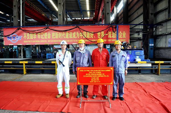 9月17日上午,公司在東區(qū)鋼加車間舉行船舶點火開工儀式,28#210000噸散貨船船體結(jié)構(gòu)件開始切割預(yù)制。生產(chǎn)管理部負(fù)責(zé)人陳月鋒、質(zhì)量管理部負(fù)責(zé)人秦峰與新加坡船東Eastern Pacific Shipping Pte. Ltd.(EPS)現(xiàn)場經(jīng)理倪杰等出席活動。
