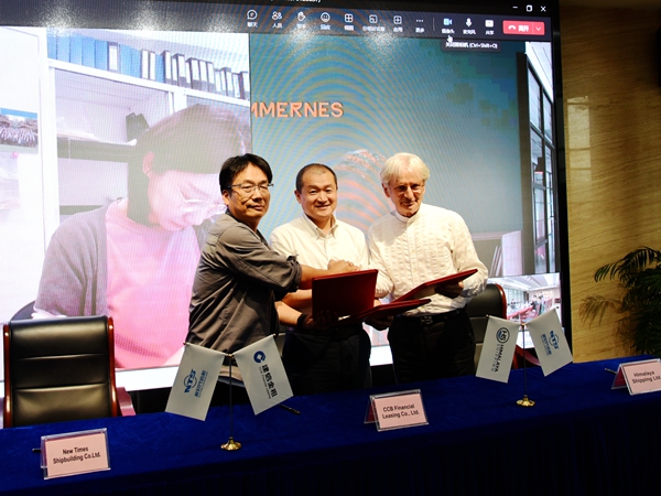總經(jīng)理劉海金出席活動(dòng),見(jiàn)證船舶成功交付;常務(wù)副總經(jīng)理張玉永與船東現(xiàn)場(chǎng)經(jīng)理Davor Radic、建信金租船舶業(yè)務(wù)部部門總經(jīng)理趙維銘共同簽署交付文本。