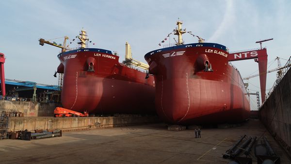 搶時(shí)間提速度 兩艘65000噸散貨船同日下水