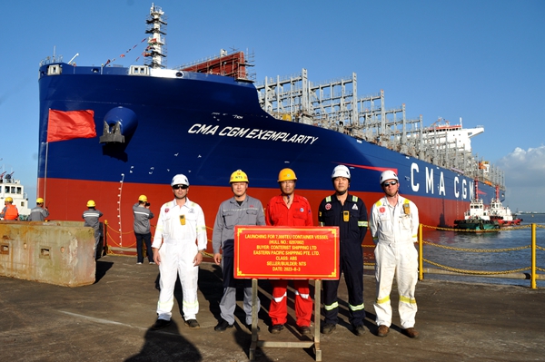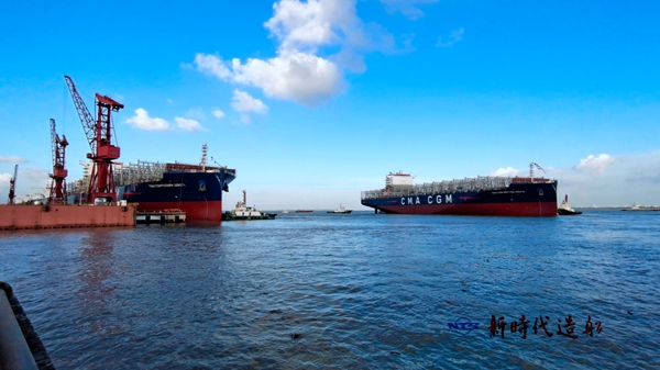 2#5#7000箱集裝箱船提前5天下水
