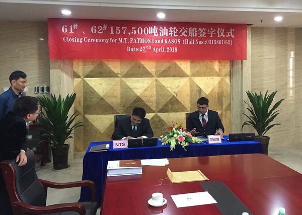 4月27日上午,公司舉行船舶簽字交付儀式,61#、62#158000噸油船交付船東。