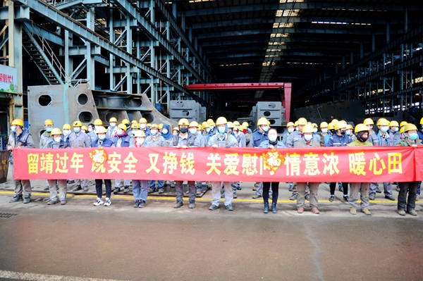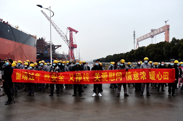 在“員工留靖過春節(jié)、非必要不返鄉(xiāng)”的倡議下,廣大外省籍員工積極響應(yīng),主動表示留靖過年,用實際行動為進一步鞏固來之不易的疫情防控成效作出新的貢獻,也為來年船舶生產(chǎn)建造早開工、早落實下好先手棋、打好主動仗。
