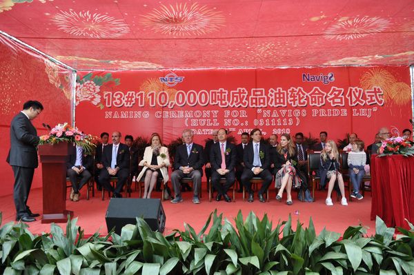 4月13日上午,公司隆重舉行船舶命名儀式,總經(jīng)理劉海金、英國(guó)船東代表Nicolas      Busch先生出席儀式,常務(wù)副總經(jīng)理張玉永主持儀式,公司領(lǐng)導(dǎo)朱韓鋼、丁柏英、鄭忠、徐震宇與Nicolas  Busch先生的家人及船級(jí)社代表等嘉賓一起參加了活動(dòng)。13#111000噸油船被成功命名為“VAVIG8  PRIDE  LHJ”號(hào)。