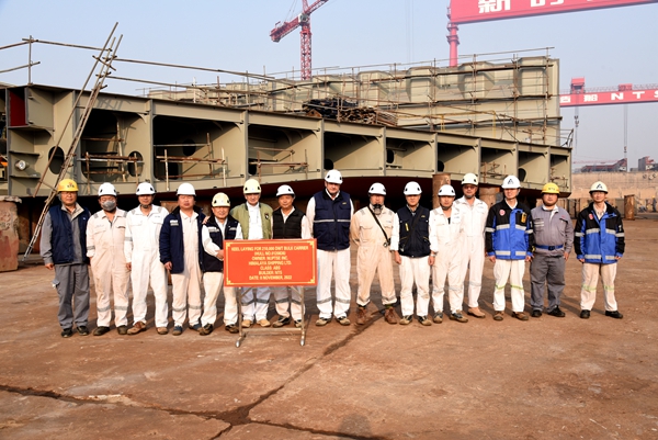 生產(chǎn)管理部負(fù)責(zé)人陳月鋒、營(yíng)銷部相關(guān)人員分別與船東喜馬拉雅公司現(xiàn)場(chǎng)經(jīng)理Davor Radic、船東Eastern Pacific Shipping Pte.Ltd.(EPS)現(xiàn)場(chǎng)經(jīng)理倪杰等嘉賓出席活動(dòng)。210000噸雙燃料動(dòng)力散貨船總長(zhǎng)299.95米,兩柱間長(zhǎng)294.75米、型寬50.00米,型深25.20米,設(shè)計(jì)吃水18.40米,結(jié)構(gòu)吃水18.48米,載重噸210000MT。